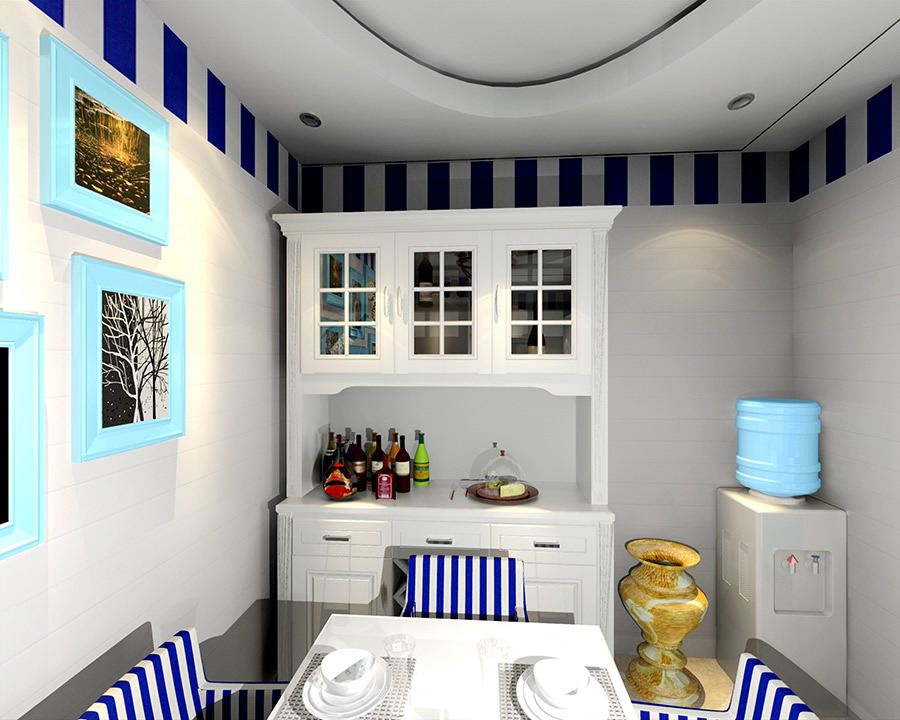 首先被吸引的就是色彩的搭配,顏色大膽卻不會覺得過于浮夸,在圓形吊頂?shù)囊r托下,一切渾然天成,精致的餐桌與餐椅交相輝映,極簡中透露出一股子小清新。